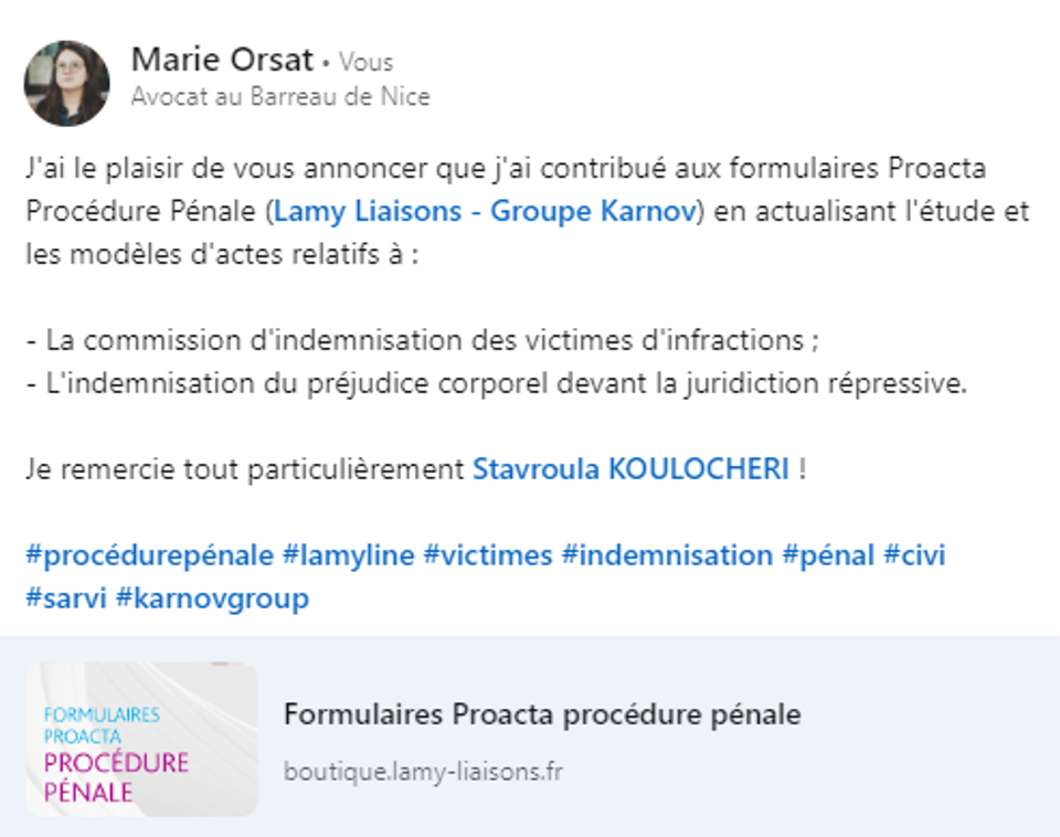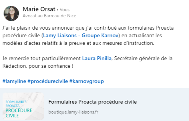 Maître ORSAT intègre l’annuaire des auteurs d’une base de données juridique réputée.